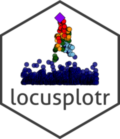 The goal of locusplotr is to allow users to integrate genome-wide association study results with linkage disequilibrium data to create regional association plots surrounding a genomic locus of interest. The gg_locusplot function allows the user to provide GWAS summary statistics for a region of interest and a reference/sentinel/lead variant within that region, and will return a ggplot object with a regional association plot. In the background, this package uses a helper function named ld_extract_locuszoom to query the University of Michigan LocusZoom API (https://portaldev.sph.umich.edu/) to obtain linkage disequilibrium data for a genetic variant and genomic region of interest (allowing the user to specify genome build and genetic ancestry).